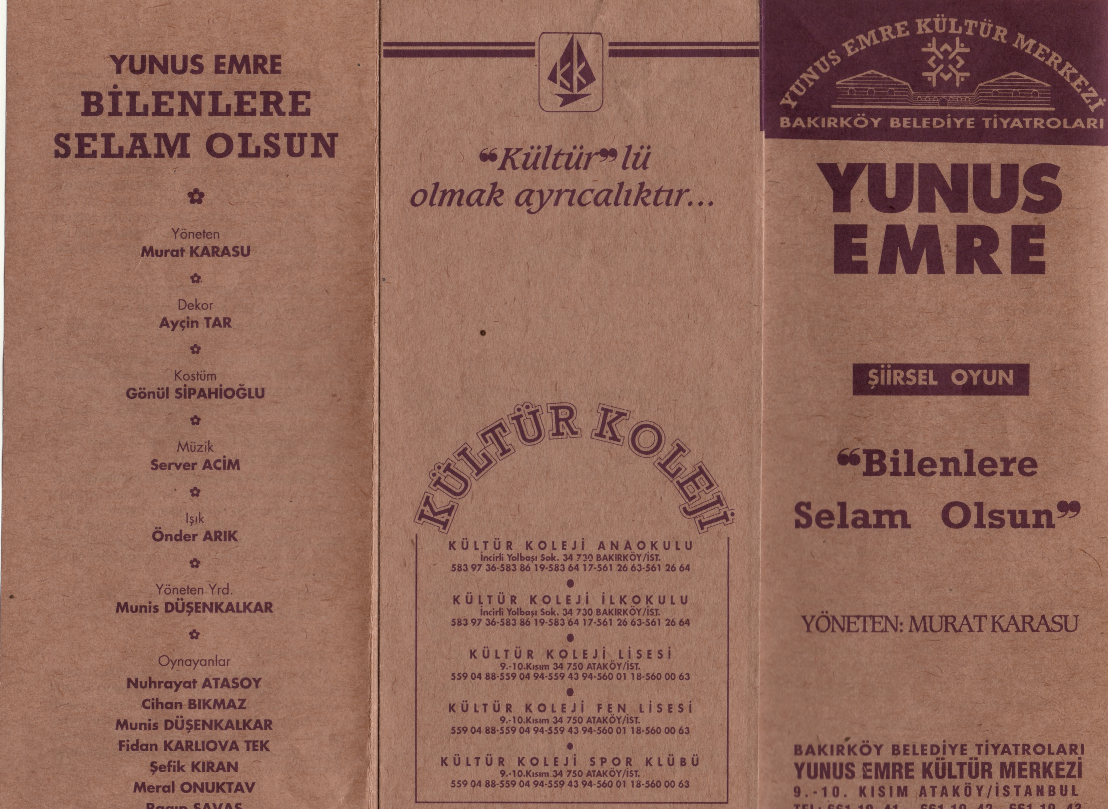 Yönetmen Yardımcısı Munis Düşenkalkar Dekor Kostüm Gönül Sipahioğlu Işık Önder Arık